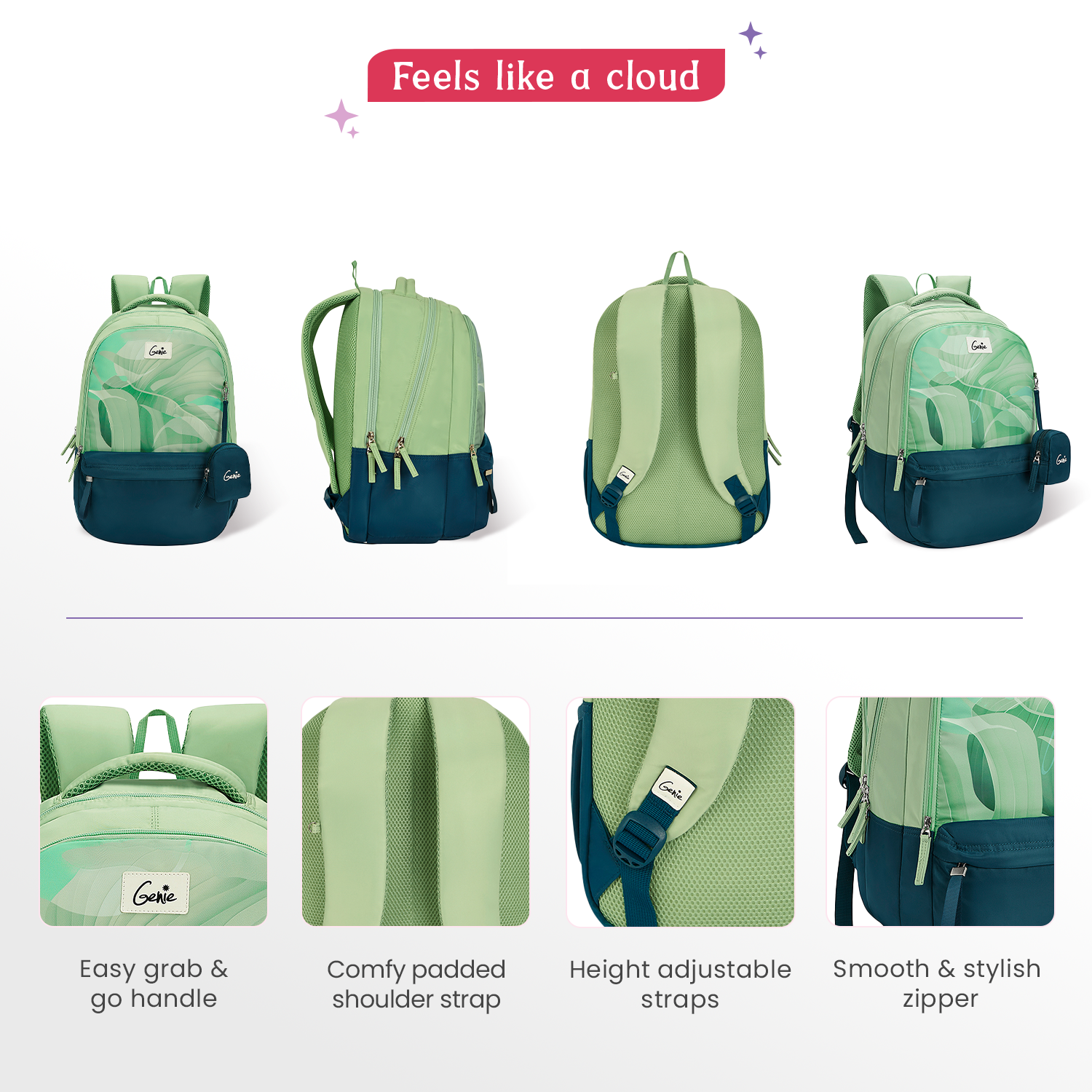 Genie Celia 40L Dark Green Laptop Backpack With Raincover + 1 Year Warranty